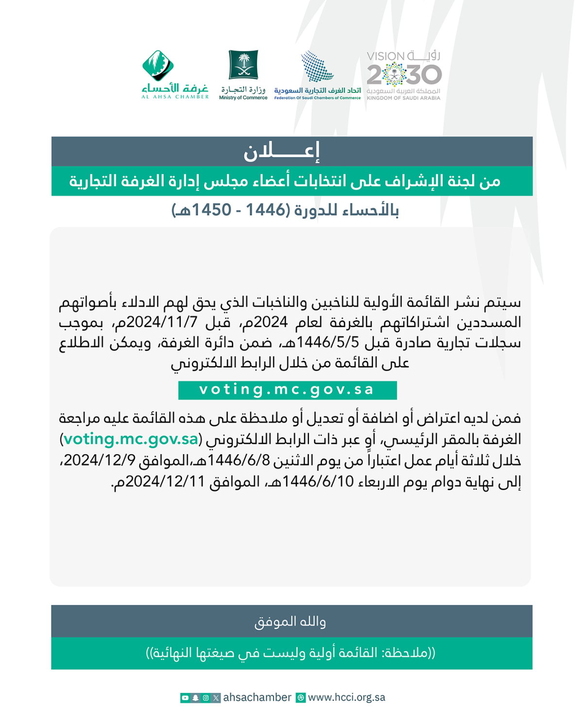 إعلان – القائمة الأولية للناخبين والناخبات