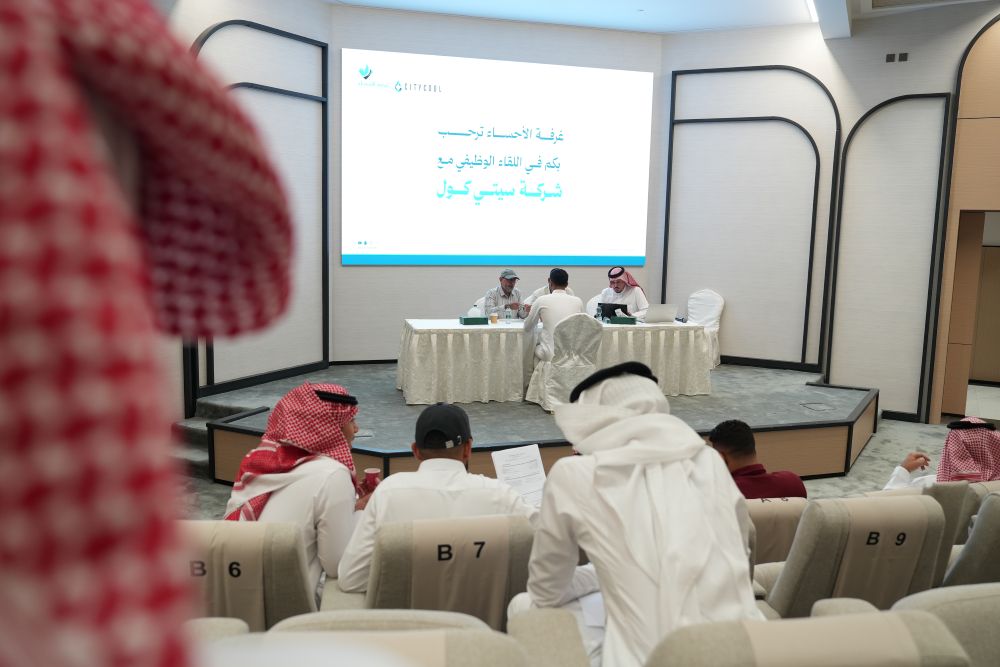 نظّمت غرفة الأحساء مؤخرًا لقاء توظيف مع شركة سيتي كول – احدى شركات “مجموعة الراجحي القابضة”، التي تعمل في مجال تقديم خدمات وحلول التبريد، لعرض عدد من الوظائف الهندسية والفنية المتنوّعة، وذلك بقاعة الشيخ سليمان الحماد -رحمه الله- بمقر الغرفة.