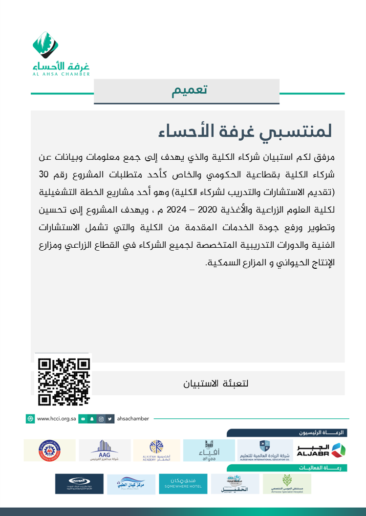 استبيان شركاء كلية العلوم الزراعية والأغذية بجامعة الملك فيصل