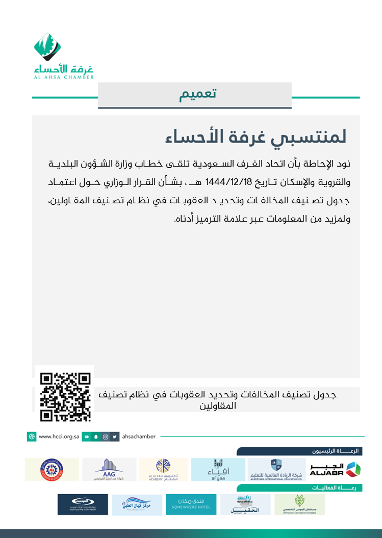 اعتماد جدول تصنيف المخالفات وتحديد العقوبات في نظام تصنيف المقاولين