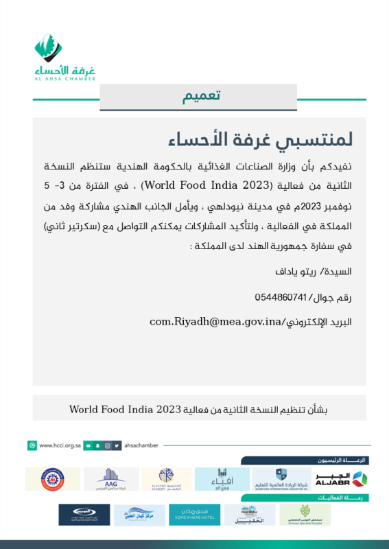 بشأن تنظيم النسخة الثانية من فعالية World Food India 2023