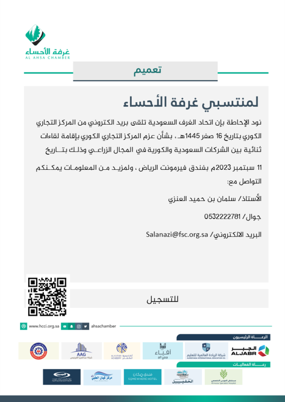 بشأن لقاء الشركات السعودية مع الشركات الكورية بالمجال الزراعي