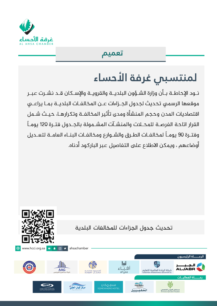 تحديث جدول الجزاءات للمخالفات البلدية