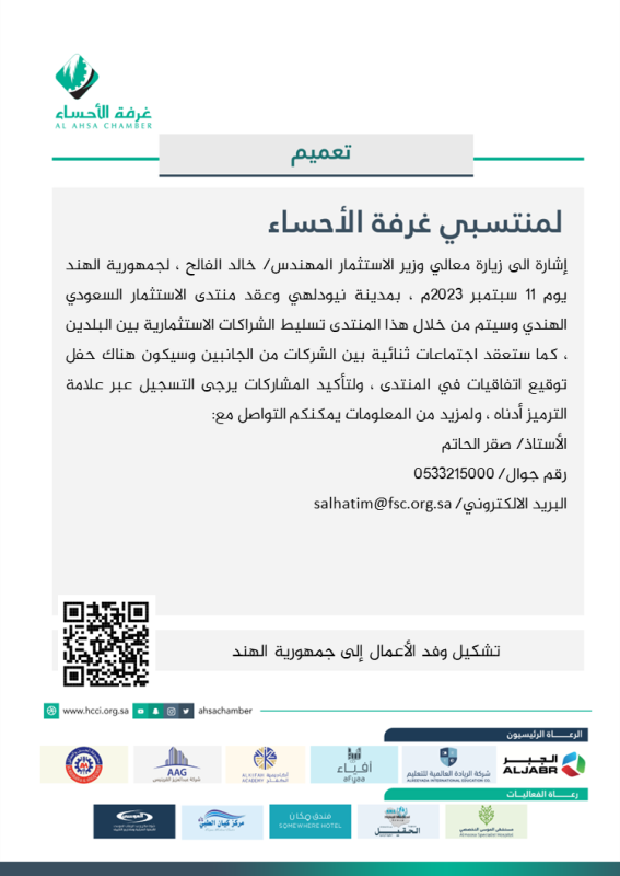 تشكيل وفد الأعمال إلى جمهورية الهند