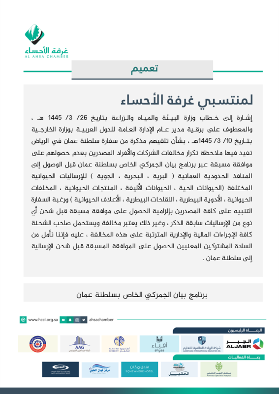 تعميم برنامح بيان الجمركي الخاص بسلطنة عمان