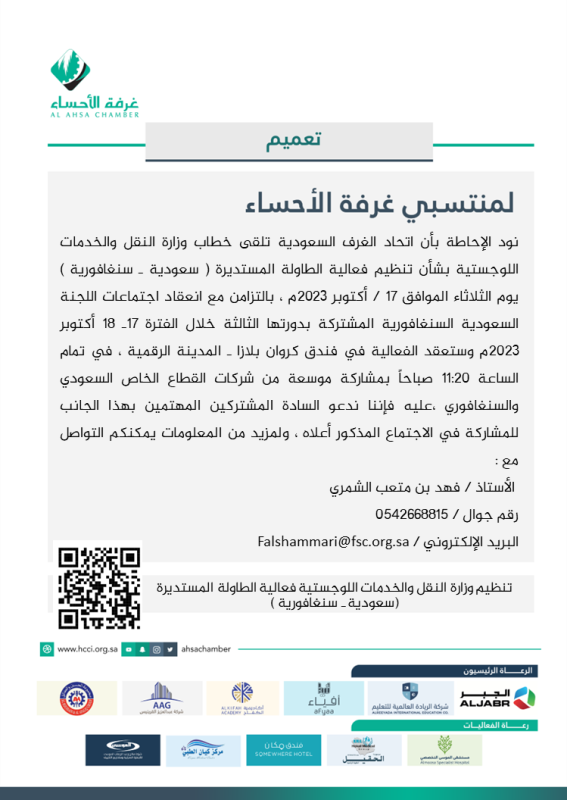 تنظيم وزارة النقل والخدمات اللوجستية فعالية الطاولة المستديرة (سعودية ـ سنغافورية )
