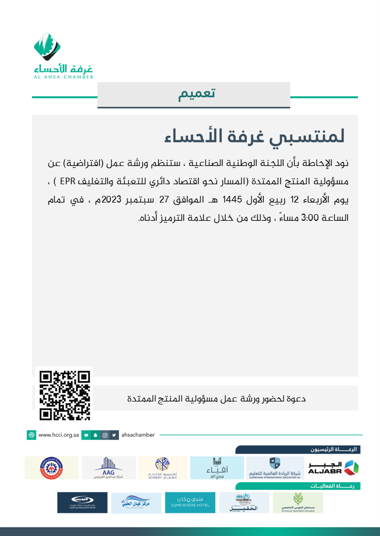 دعوة لحضور ورشة عمل مسؤولية المنتج الممتدة