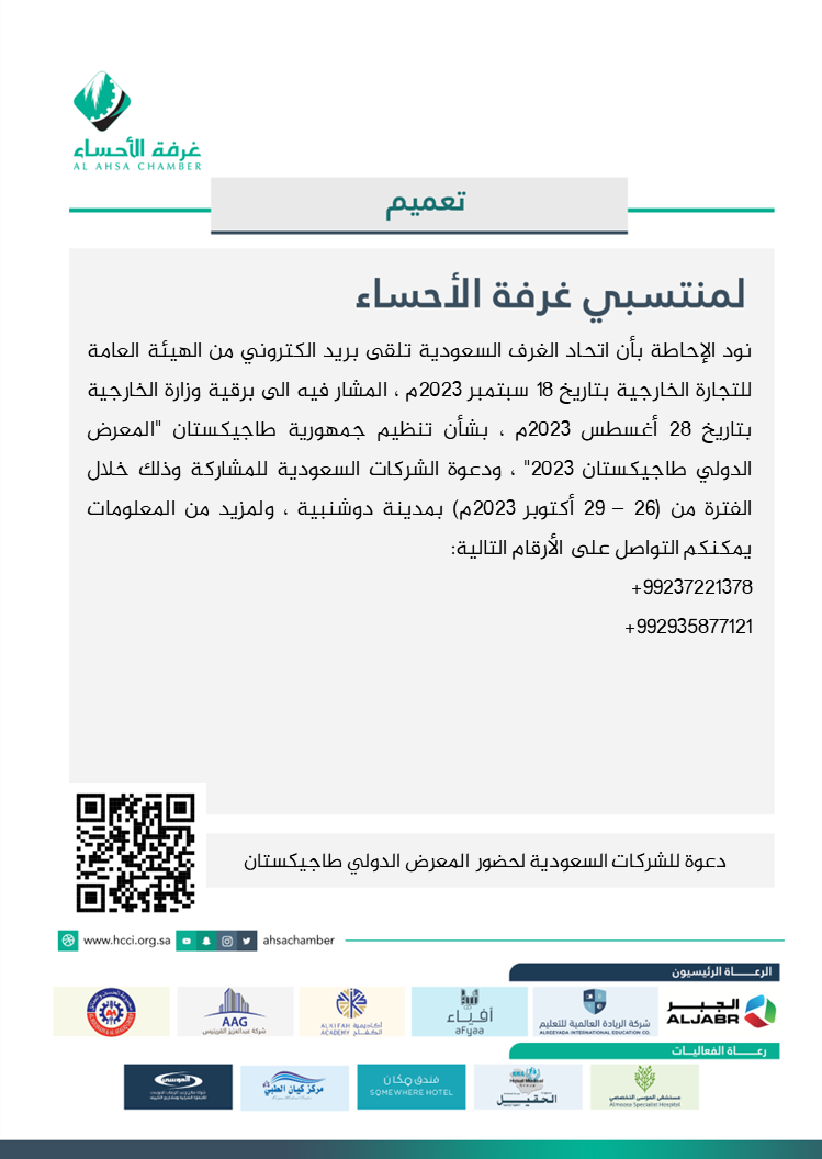 دعوة للشركات السعودية لحضور المعرض الدولي طاجيكستان