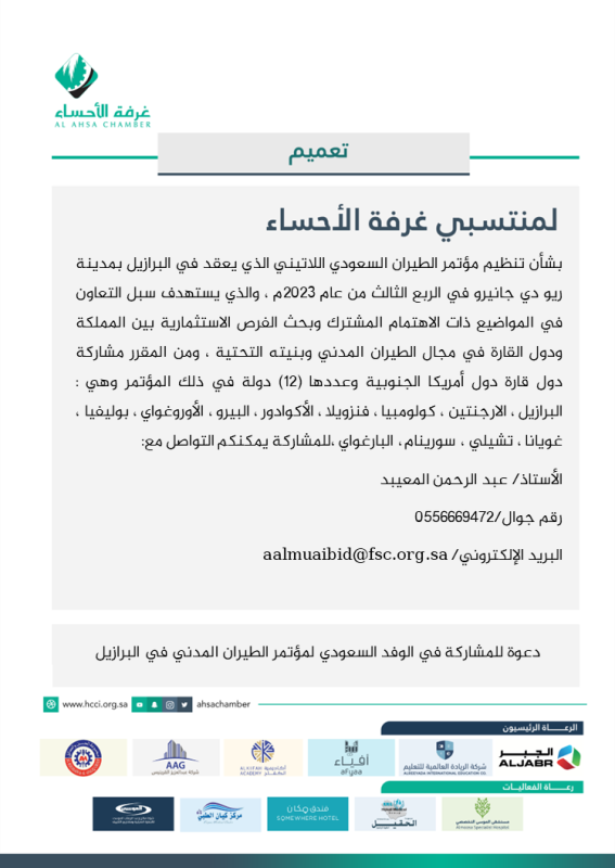 دعوة للمشاركة في الوفد السعودي لمؤتمر الطيران المدني في البرازيل