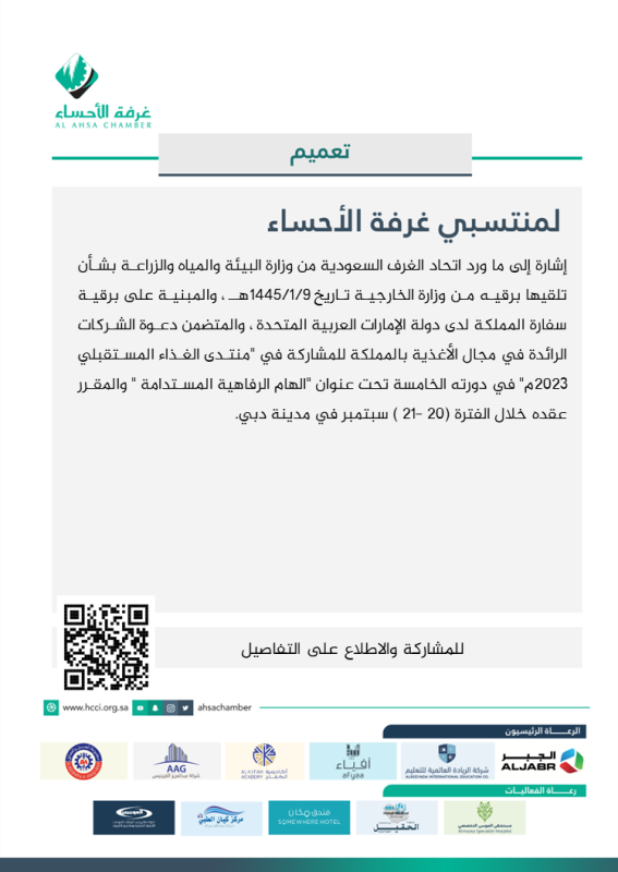 دعوة للمشاركة في منتدى الغذاء المستقبلي