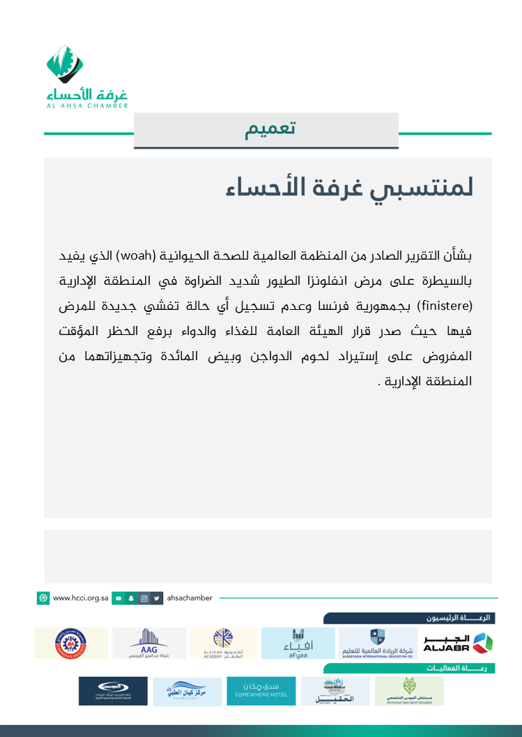 رفع الحظر الموقت على استيراد لحوم الدواجن وبيض المائدة من جمهورية فرنسا