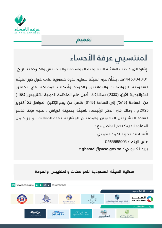 فعالية الهيئة السعودية للمواصفات والمقاييس والجودة