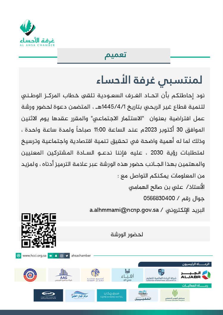 ورش عمل افتراضية بعنوان الاستثمار الاجتماعي