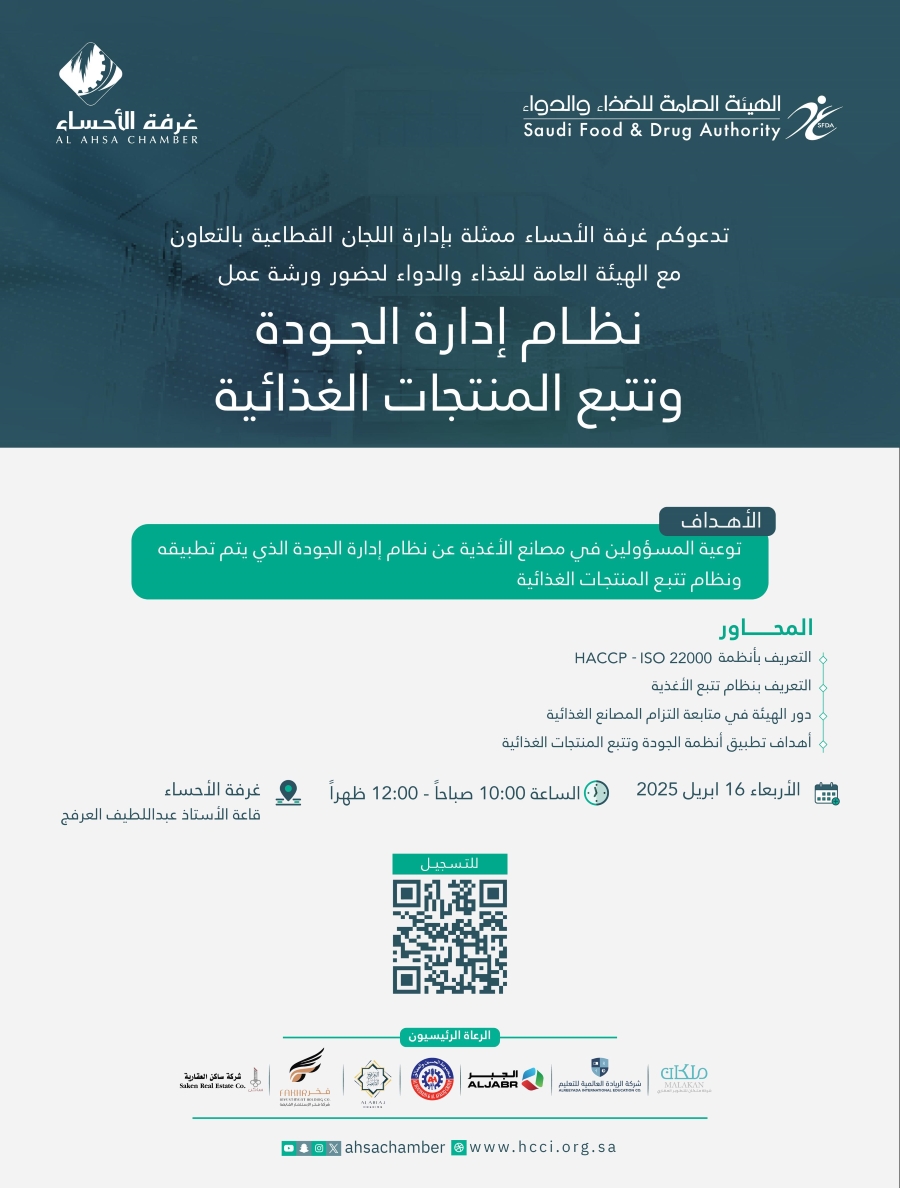 ورشة عمل : نظام إدارة الجودة وتتبع المنتجات الغذائية